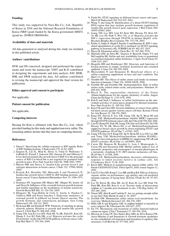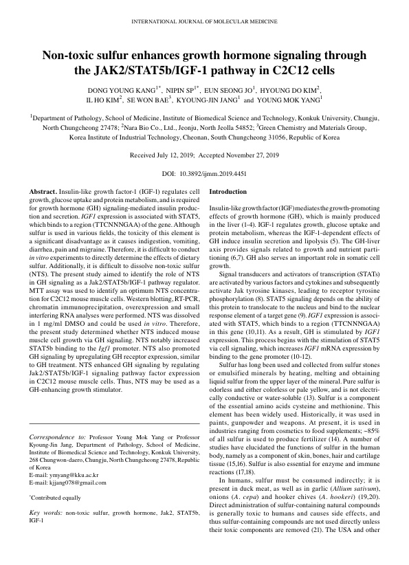 (°Ç±¹´ë IJMM-¿µ¹®)Non‑toxic sulfur enhances growth hormone signaling through.pdf