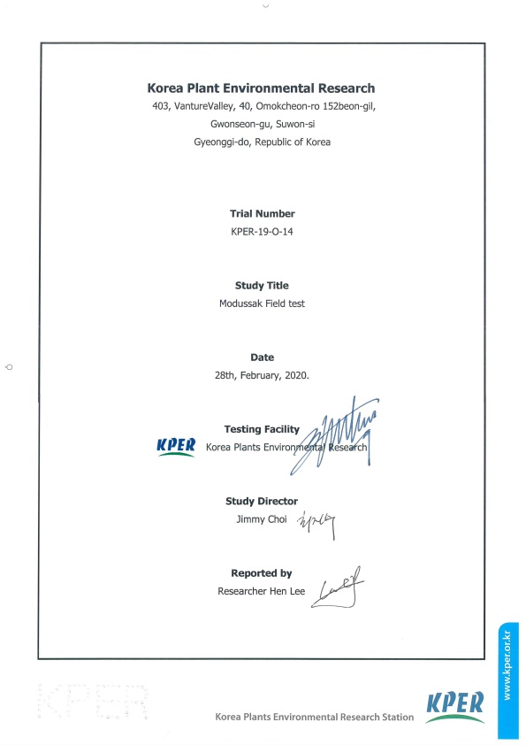 MoDooSsak is an organic material made using admiral sulfur and microorganisms and certified by the state.