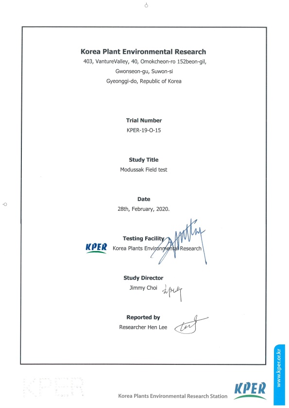 MoDooSsak is an organic material made using admiral sulfur and microorganisms and certified by the state.